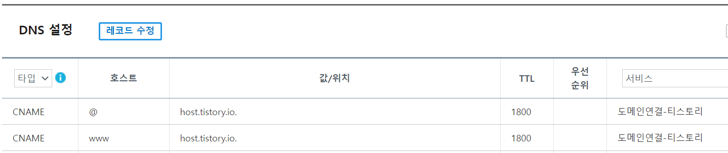 그러면 DNS설정에 아래처럼 나옴. 그러면 가비아에서 할 일은 끝난 것임